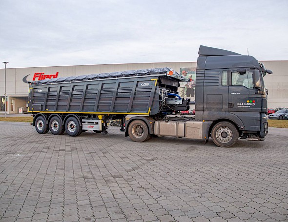 Die Abschiebe-Sattelauflieger von Fliegl transportieren großvolumige und schwere Güter und laden Sie in Sekundenschnelle ab. Egal ob Hackschnitzel, Pellets oder im Recycling, die Abschiebetechnik sorgt für ein gleichmäßiges und restloses Entleeren.