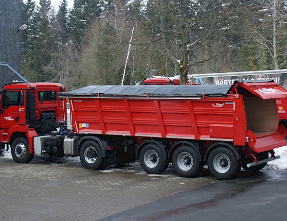 Totalentleerung auch bei extrem klebrigen Material wie z.B. Ton, Lehm, Kleie Böden, „Flüsterasphalt“, - kein manuelles Reinigen bzw. Abkratzen der Kipperbrücke erforderlich - mehr Sicherheit durch ein geringeres Risiko