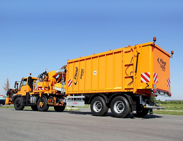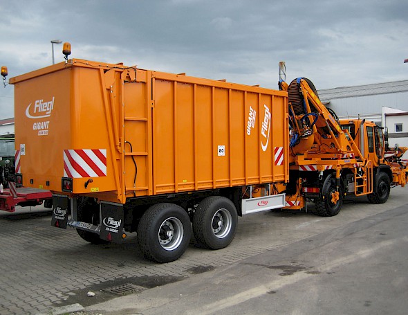 Der Abschiebewagen Mähgut ist die optimale Kombination für den ökologischen Straßenbetriebsdienst.