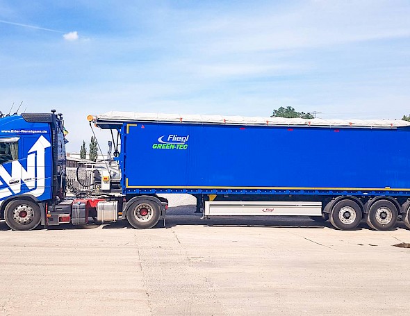 Die Abschiebe-Sattelauflieger von Fliegl transportieren großvolumige und schwere Güter und laden Sie in Sekundenschnelle ab. Egal ob Hackschnitzel, Pellets oder im Recycling, die Abschiebetechnik sorgt für ein gleichmäßiges und restloses Entleeren.